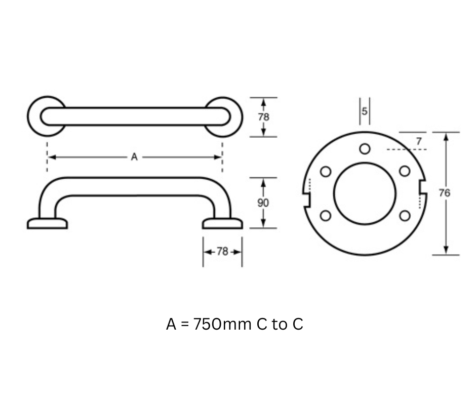 750mm Straight Grab Rail